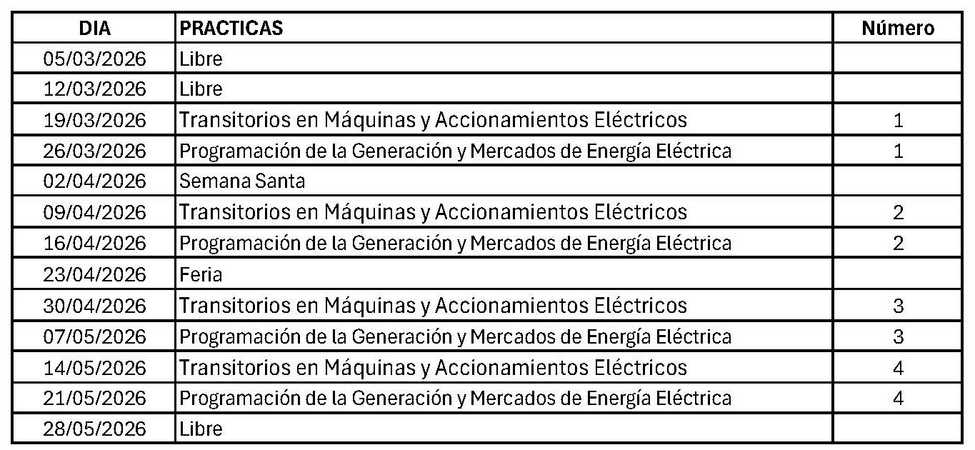 HORARIO MSEE 2025/2026 Horario de Prácticas MSEE 2025-2026 2o Cuatrimestre